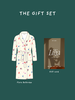 Geschenkideen leicht gemacht — unser Gift Set kombiniert den ultraweichen Flora-Bademantel mit einem Lilja Gutschein, sodass die Empfängerin ihre perfekte Swimwear in passender Größe, Farbe und Stil selbst auswählen kann.