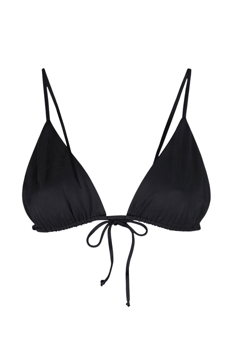 Klassinen kolmiobikinimme mustassa värissä, Black Tri Top, takaa ihailevat katseet ja minimaaliset rusketusrajat. Voit liikuttaa ja asetella kuppeja muokataksesi bikiniyläosan peittävyyttä juuri itsellesi sopivaksi. Istuvuuden takaa selän sidottava kiinnitys ja kaksoisvuoratut kupit tarjoavat lisäpeittävyyttä. Kolmiobikineissämme on suorat, määrämittaiset, ohuet olkaimet, jotka yhdistyvät selän nauhaan tyylikkäästi luoden minimalistisen ilmeen. Tämä kevyen tuen malli sopii erityisen hyvin auringonottoon ja rentoutumiseen.