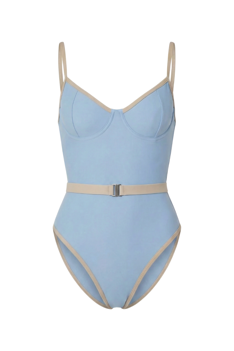 Tässä elegantin ajattomassa uimapuvussa on kaarituelliset kupit, ja sen reunoja koristaa vaaleanbeiget saumat. Uimapuvussa on hieman kaarrettu avonainen selkä. Säädettävät olkaimet ja irrotettava vyö mahdollistavat muokattavan istuvuuden ja stailauksen. Uimapuvun leikkaus on keskipeittävä ja jalantien leikkaus on korkea korostaen ja pidentäen vartalosi linjoja. Olemme käyttäneet uimapuvussa kaksi kerrosta kangasta lisätäksemme mukavuutta, tukea ja peittävyyttä juuri oikeisiin kohtiin.