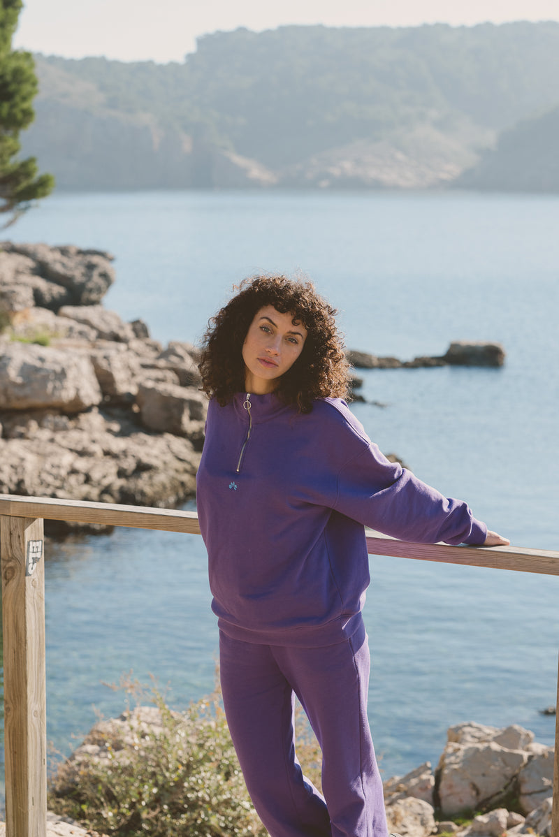 It's time to cosy up. Think of autumn walks, early morning coffee runs or post-yoga comfort. With a straight-leg style and a soft elastic band on the waist, these purple sweatpants are sure to become your favourites, whether you're heading for a cold swim or just lounging at home. And for that signature touch, you'll find our iconic Lilja the Label floral logo embroidered on the left thigh.