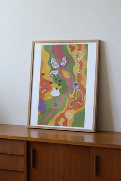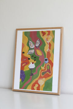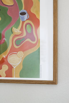 Olives, oysters and espresso? Sounds like siesta. Brighten up your home with our summery Lilja the Label x Kaisla Laranta poster. Coming in size 40x50cm, the exclusive hand-painted 'Siesta' print by Kaisla is now also available for your wall.